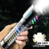 ¿Cómo funciona?: El nivel de brillo de la linterna es de 1600 lúmenes y su distancia de irradiación es de aproximadamente 100 a 200 metros. Conveniente para buscar objetivos. Hecho de material ABS y PS, con resistencia al agua IP65, la linterna es adecuada para pescar, cazar, acampar al aire libre, etc. (no se permite caer al agua).